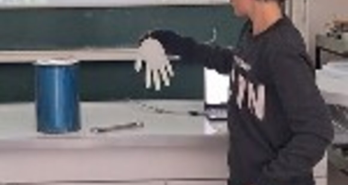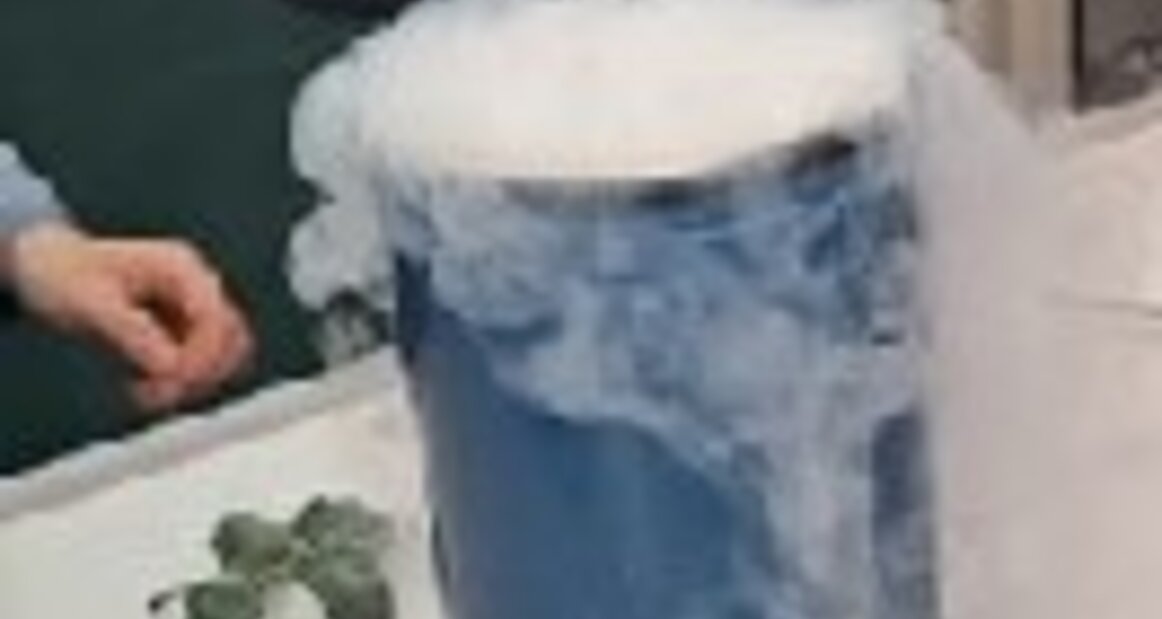 Neben dem Vortrag waren für die Schülerinnen und Schüler sicherlich das Spannendste die sich an den Vortrag anschließenden Experimente mit flüssigem Stickstoff, den Herr Dr Raba-nus für ein Modellexperiment mitgebracht hatte. Die Messwerte zeigten, dass der Wetter-ballon auf 6 km Höhe durch Wolken geflogen sein musste, die -21°C kalt waren. Hier musste der Ballon also kleine Eiskristalle passieren. In höheren Schichten durchflog er ebenfalls Wol-ken. War das der Grund, warum er früher geplatzt war als vermutet? Eine mögliche Be¬schä-digung der Latexhülle des Ballons durch die Eiskristalle? Als Modell¬experiment tauchten die Schülerinnen und Schüler aufgeblasene Latexhandschuhe in einen Behälter mit flüs¬si¬gem, eisigem Stickstoff und entwickelten weitere Experimente. Man konnte erkennen, dass sich durch die extrem tiefen Temperaturen nicht nur das Volumen der Handschuhe ver¬än¬der¬te, sondern auch die Beschaffenheit des Materials selber. So wurde es nachvollziehbar, dass die niedrigen Temperaturen in der Atmosphäre den Wetterballon ggf. zu einem verfrühtem Plat-zen gebracht haben könnten. Dies ist allerdings nur eine von mehreren Hypothesen. Die Grup¬pe bleibt am Thema.