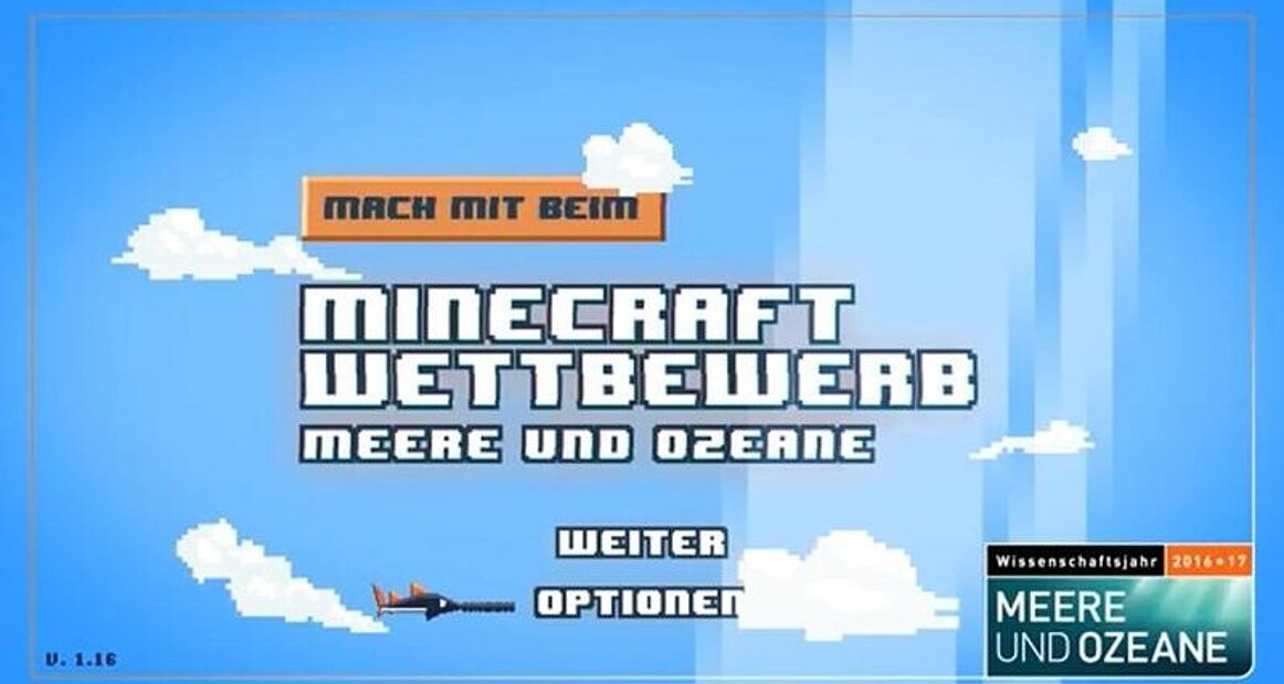 Und los geht’s: Entwickle mit Minecraft Lösungen zu zentralen Fragen aus der Meeresforschung und zeige in einem zweiminütigen Video auf, wie wir lokal und weltweit handeln können. Alle Informationen zum Wettbewerb gibt es auf der Seite des Wissenschaftsjahres 2016*17 - Meere und Ozeane.