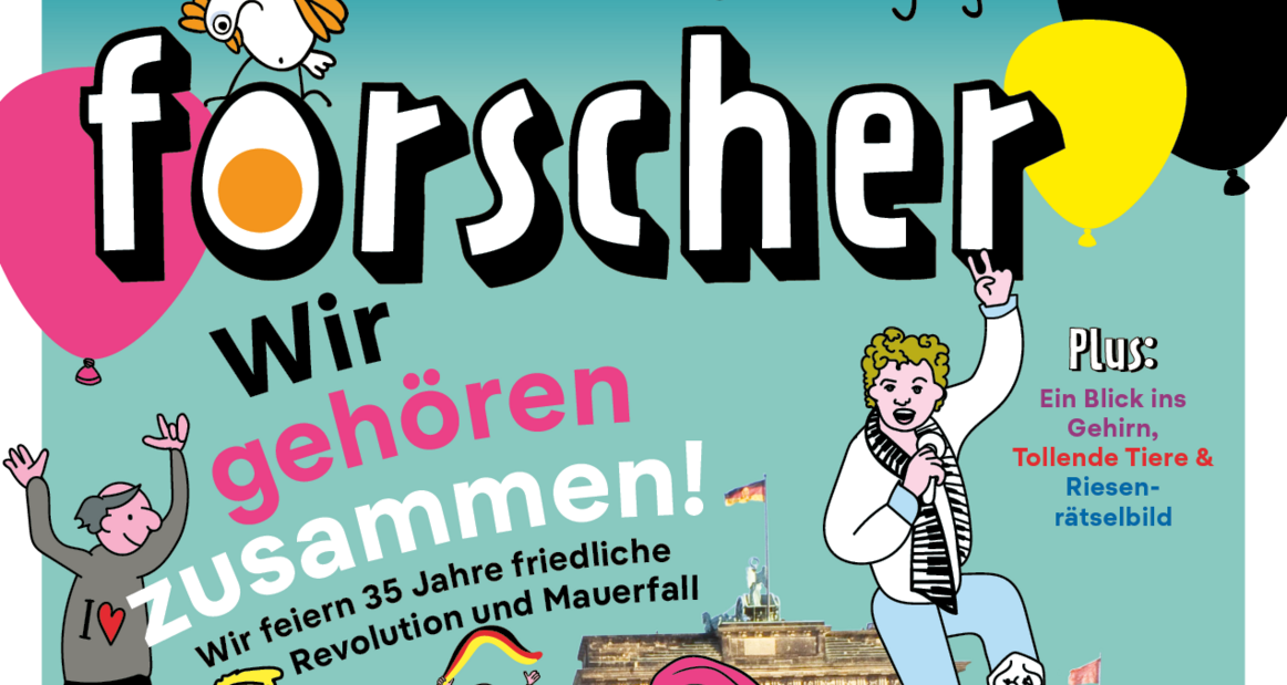 „forscher – Das Magazin für Neugierige“ lädt auf eine spannende Reise in die Welt der Wissenschaft ein. Es richtet sich an Leserinnen und Leser zwischen acht und zwölf Jahren und erwartet diese mit spannenden Geschichten, Bildern, Mitmachprojekten und Rätseln zu den unterschiedlichsten Themen – immer angedockt an das jeweilige Wissenschaftsjahr. In der aktuellen Ausgabe 2/2024 wird das 35-jährige Jubiläum der Friedlichen Revolution und des Mauerfalls gefeiert. Die Leserschaft erfährt darüber hinaus mehr über das Spielverhalten von Tieren, lernt die Biologin Hilde Mangold kennen und erfährt, wie Entscheidungen im Gehirn getroffen werden. Das aktuelle Heft sowie vergangene Ausgaben können unter bmbf.de/publikationen bestellt werden.